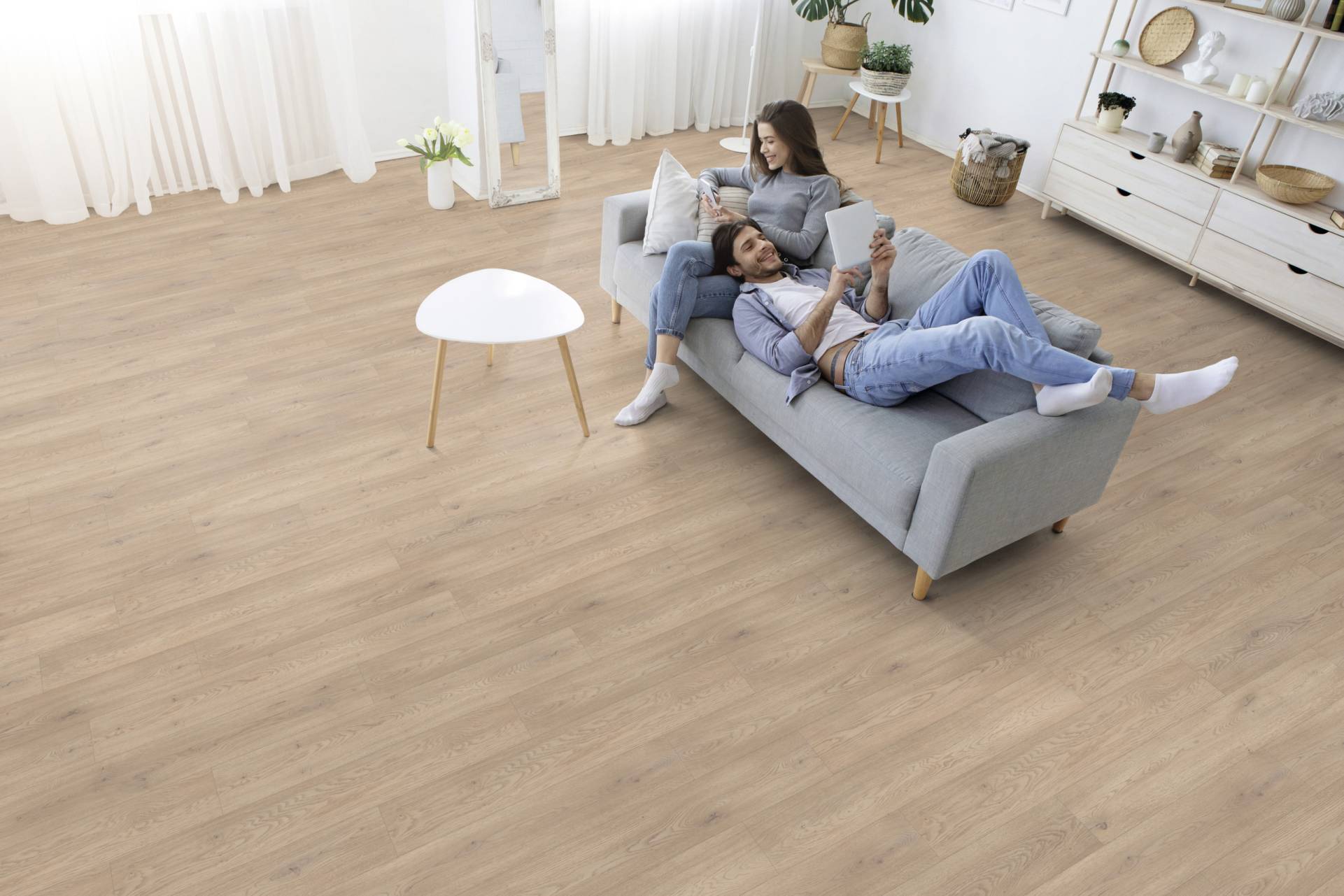 I pavimenti in laminato vengono posati flottanti, anche su pavimenti esistenti e senza uso di colle. La tenuta viene garantita dal sistema di incastro Kaindl Fold Down. In aggiunta sono indonei per la posa su sistemi di riscaldamento/raffreddamento a pavimento.
